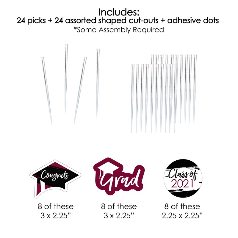 - EASY ASSEMBLY INSTRUCTIONS INCLUDED: Clear treat picks and Maroon Grad - Best is Yet to Come shaped cutouts will ship with easy assembly instructions to create unique dessert cupcake toppers.