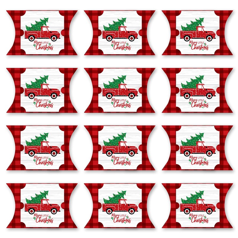 Big Dot of Happiness Merry Little Christmas Tree - Favor Gift Boxes - Red Truck Christmas Party Large Pillow Boxes - Set of 12
