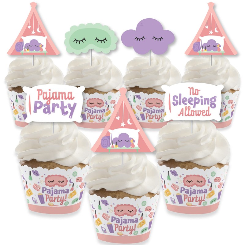 Big Dot of Happiness Pijama fiesta de pijamas – Decoración para cupcakes – Fiesta de pijamas para niñas, juego de 24 unidades