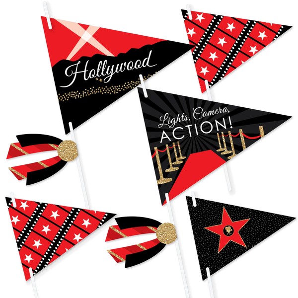 Big Dot of Happiness Red Carpet Hollywood - Triangle Movie Night Party Photo Props - Pennant Flag Centerpieces - Set of 20