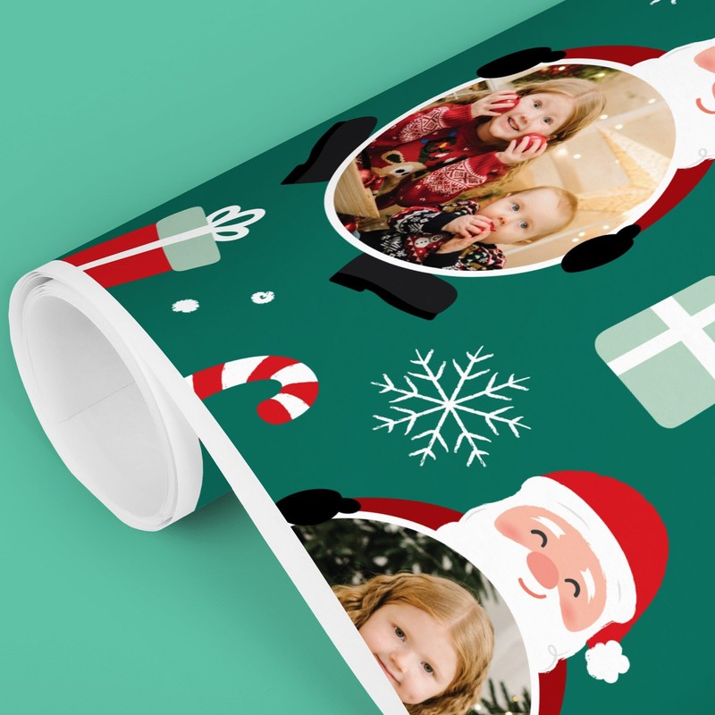 - Santa Claus Green Gift Wrapping: Style your holiday presents with by making it personalized with our vibrant and playful custom photo wrapping paper roll.