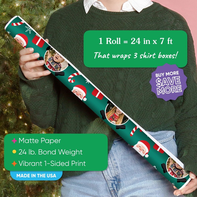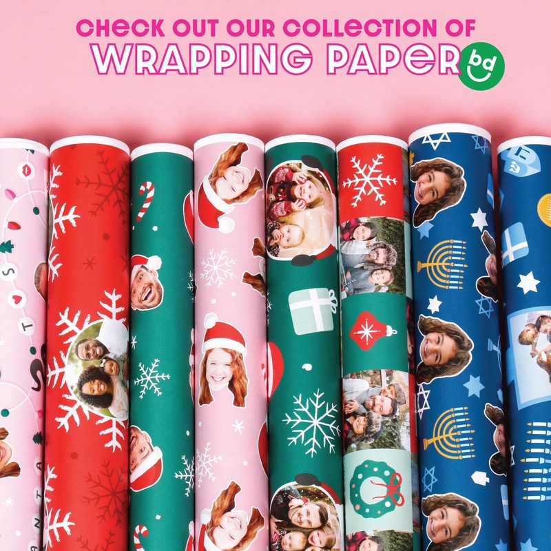 - Custom Wrapping Paper: For the ultimate gag gift this holiday season, add playful touch by uploading photo for personalized Christmas wrapping paper. Simply click “customize now” to get started.