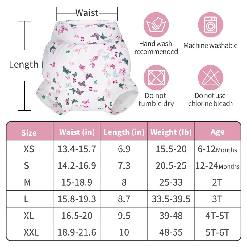 • Various patterns: Our adjustable reusable swim nappies are available in a variety of adorable patterns and designs. These adorable designs will attract your baby's attention and make swimming even more enjoyable. The nappies are available in sizes suitable for toddlers aged 6-12 months, 12-24 months, 2 years and 3 years.