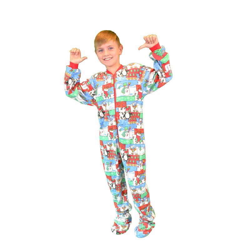 Big Feet Pjs Kids Winter Fun Fleece Boys Footed Pajamas Onesie Sleeper (S) Multi