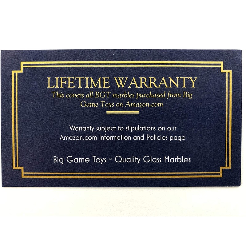 • LIFETIME WARRANTY CERTIFICATE: These marbles come with a Lifetime Warranty Certificate. This certificate is included with each sale. Please refer to images of what you will be sent.
