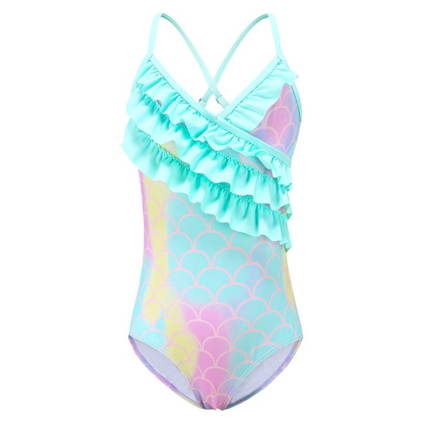 Big Girls One Piece Swimsuits Mermaid Ruffle Bathing Suits Adjustable Straps Swimsuit Size 14/7-16
