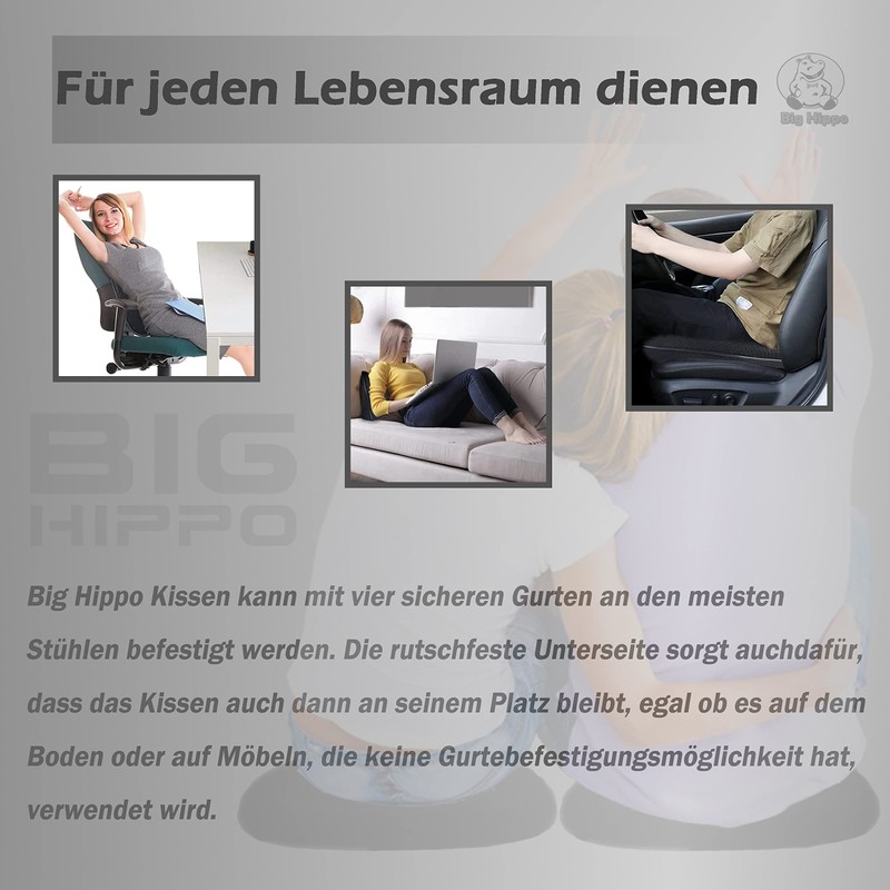 - Comfort and high support - Big Hippo seat cushions made of high-density memory foam do not flatten under weight and provide support all day long. You can sit on the chair for a long time and enjoy a high quality of life.