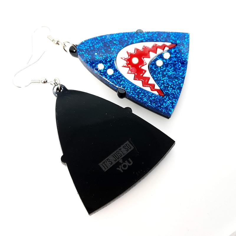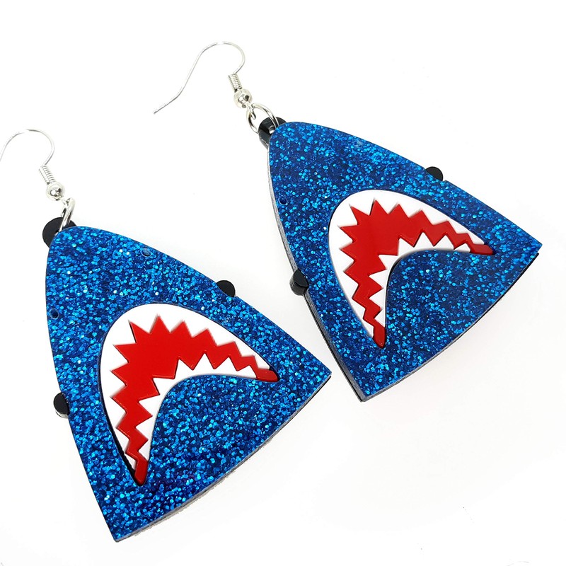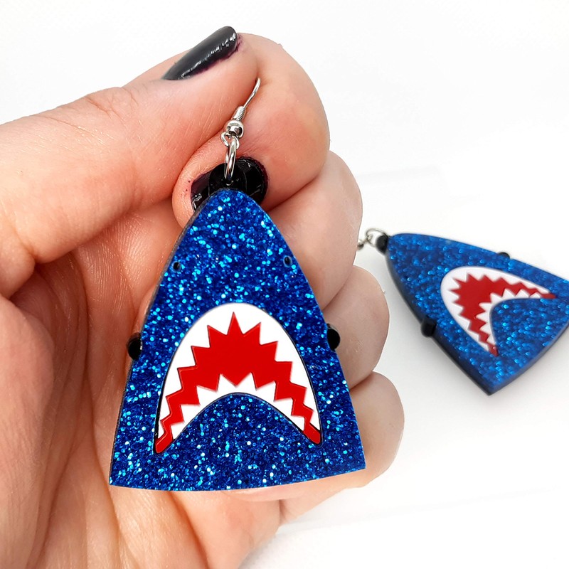 - Big Jaws Shark Head Earrings Sparkle with Laser Cut Infused Acrylic!