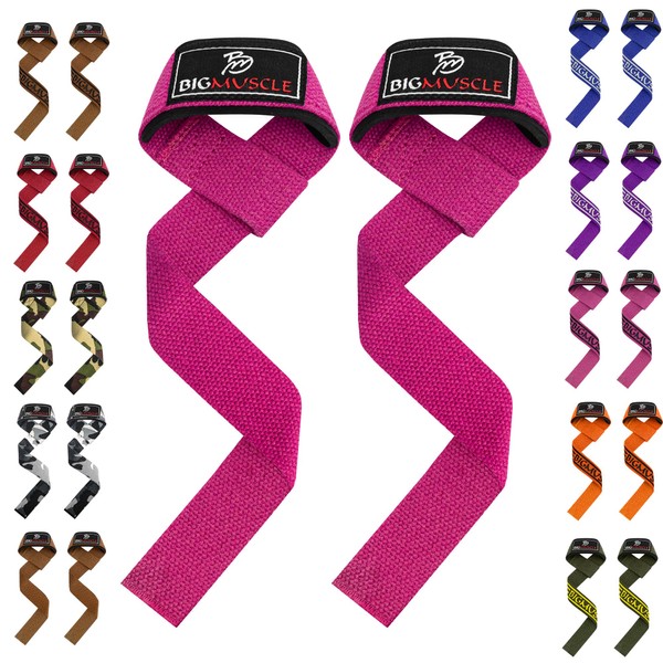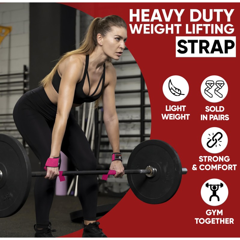 Big Muscle Wrist Straps for Weight Lifting - 24'' Lifting Straps for Weightlifting | Gym Wrist Wraps with Extra Hand Grips Support for Strength Training | Deadlifting (Pink)