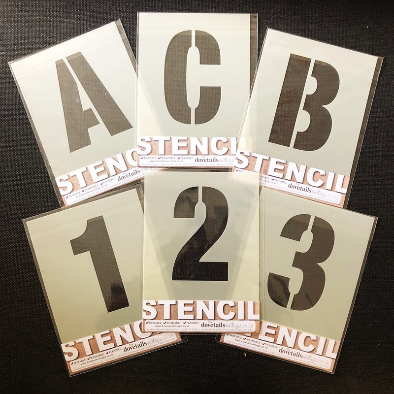 - Number size and style: 120 mm Stencil Letters, Modern font on 200 x 148 mm sheet