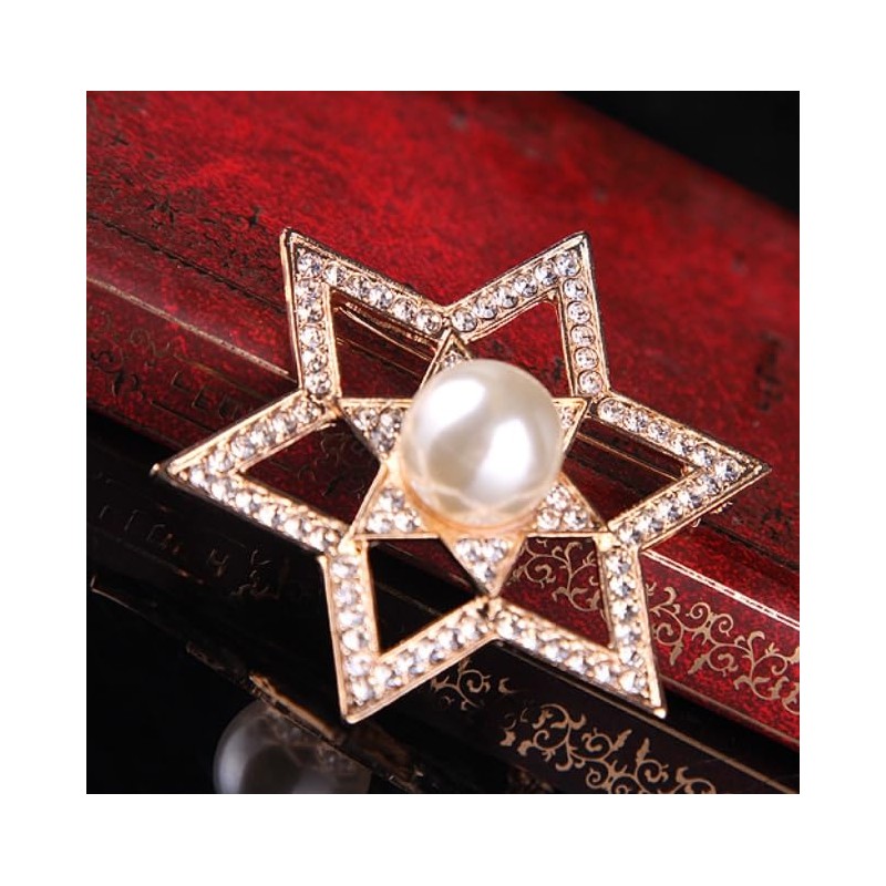 Big Pearl Crystal Hexagram Star Brooch Pin Sparkling Rhinestone Star of David Lapel Pin Women Men Dress Suit Coat Badges Full Crystal Star Safty Pin Clothing Accessories