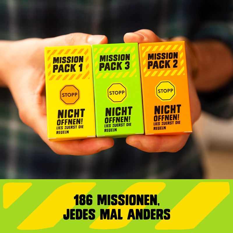 • 186 SECRET MISSIONS: In this party game, each player starts with six missions, three of which they must complete for victory. Your creativity is required and ensures that the game is always different.