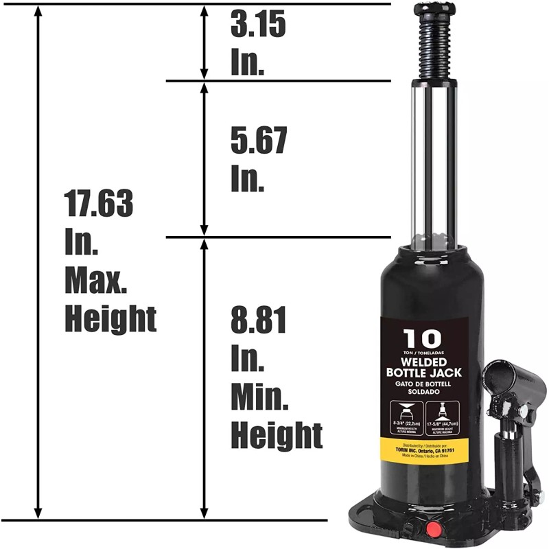 BIG RED 10 Ton (20,000 lbs) Torin W elded Hydraulic Car Bottle Jack, Black Torin