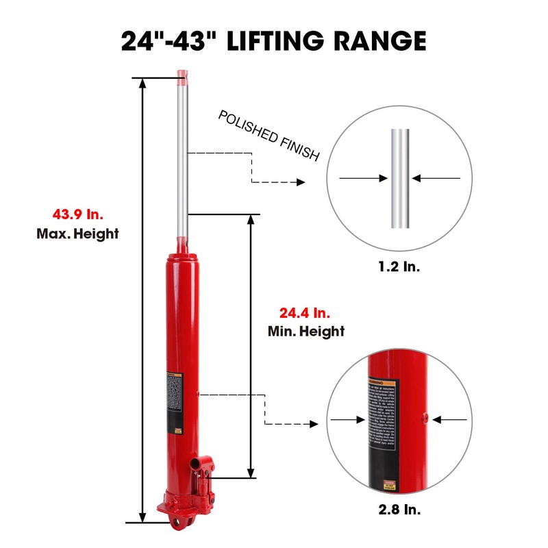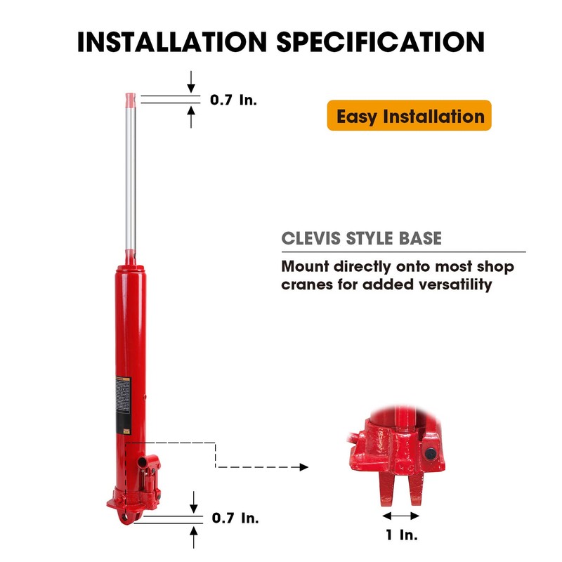 - Long ram jack is constructed of heavy-duty steel with a heat-treated chrome cylinder for added strength; Fits most garage/shop cranes, engine hoists, and more