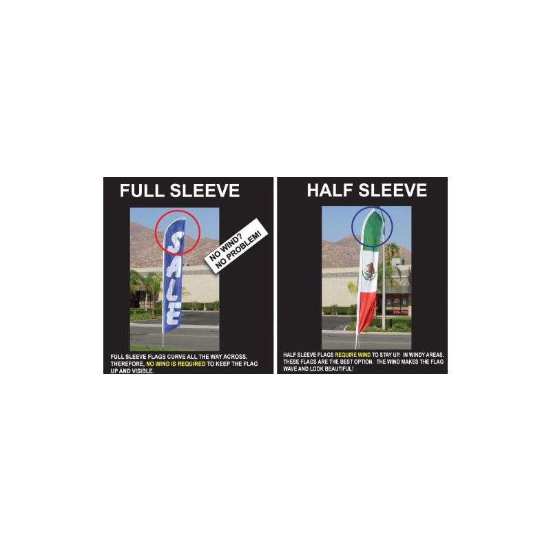 - VISIBLE FROM A DISTANCE: Bright and vibrant colors make the flags easily visible to people on the highway or a busy intersection. These are a must have to get your business noticed. Back of the flag will have a mirror image of the graphics on the front. Flag's pole sleeve is usually black but some designs can come with white.