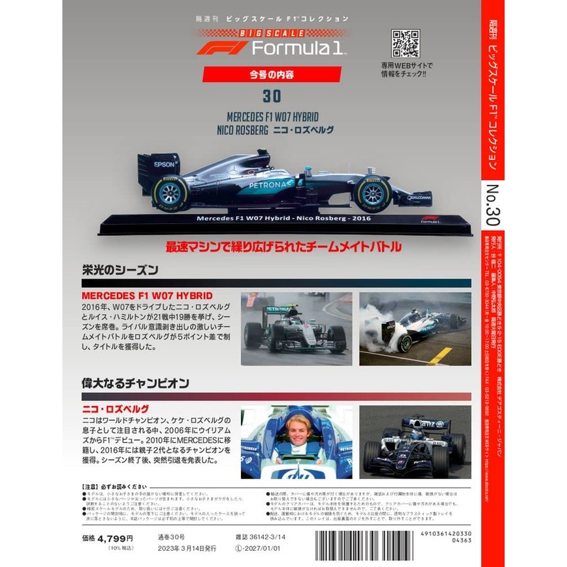 Big Scale F1 Collection No.30 (MERCEDES F1 W07 HYBRID Nico Rosberg) [Separate Encyclopedia] (with model)