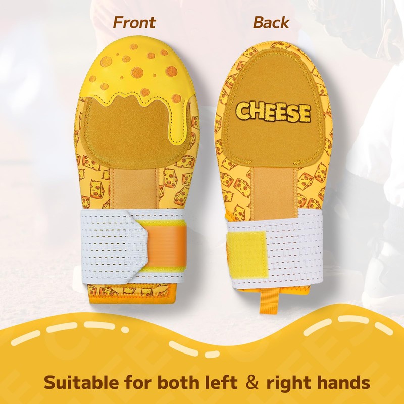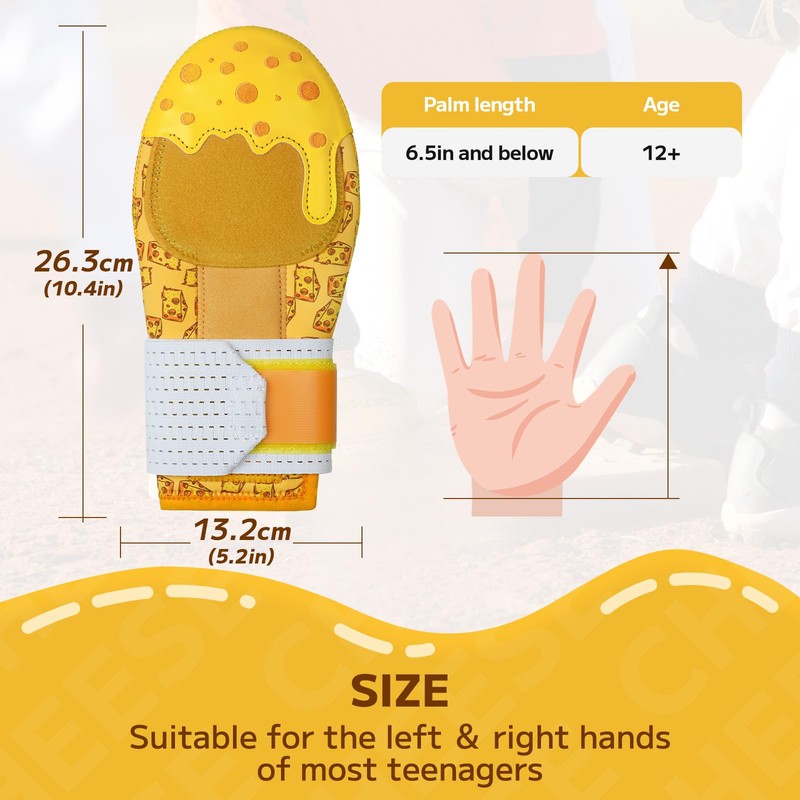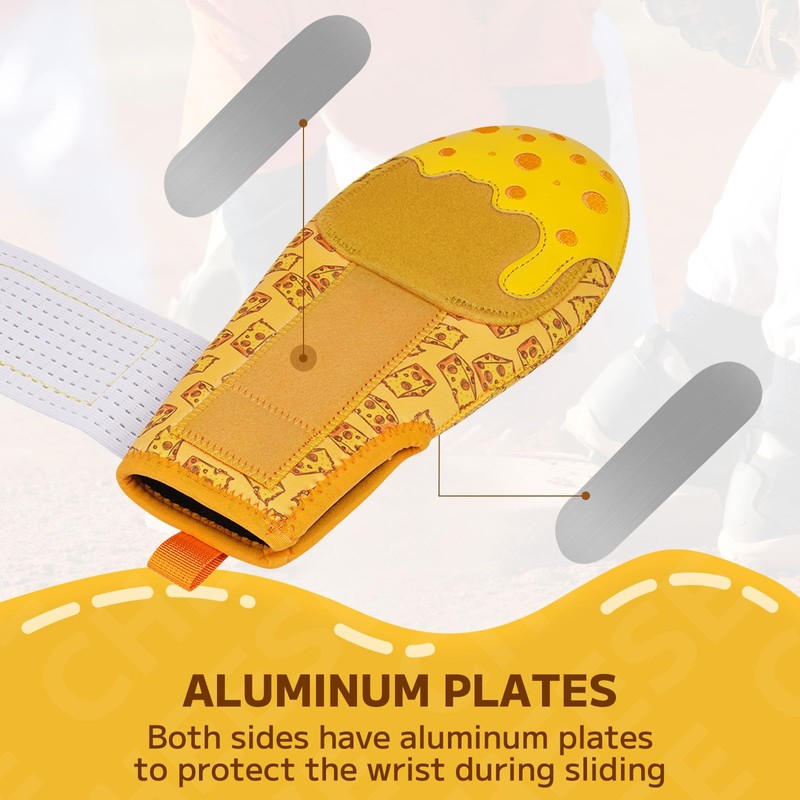 BIG TEETH Baseball Sliding Mitt Glove for Teenagers Running Softball Right/Left Hand Protection Elastic Compression Strap Magictape Padded Cheese Pattern