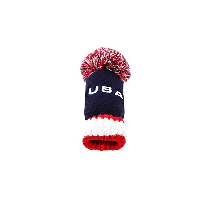 BIG TEETH Knitted Golf Club Head Covers Set of 3 Driver 460cc Fairway Hybrid UT Covers Pom Pom with Number Tag (A Set of 3)