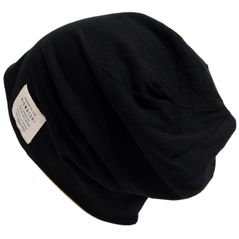 Big Watch CTP01 Men's Large Size Stretch Cotton Knit Cap, Black/Beige, L, Black