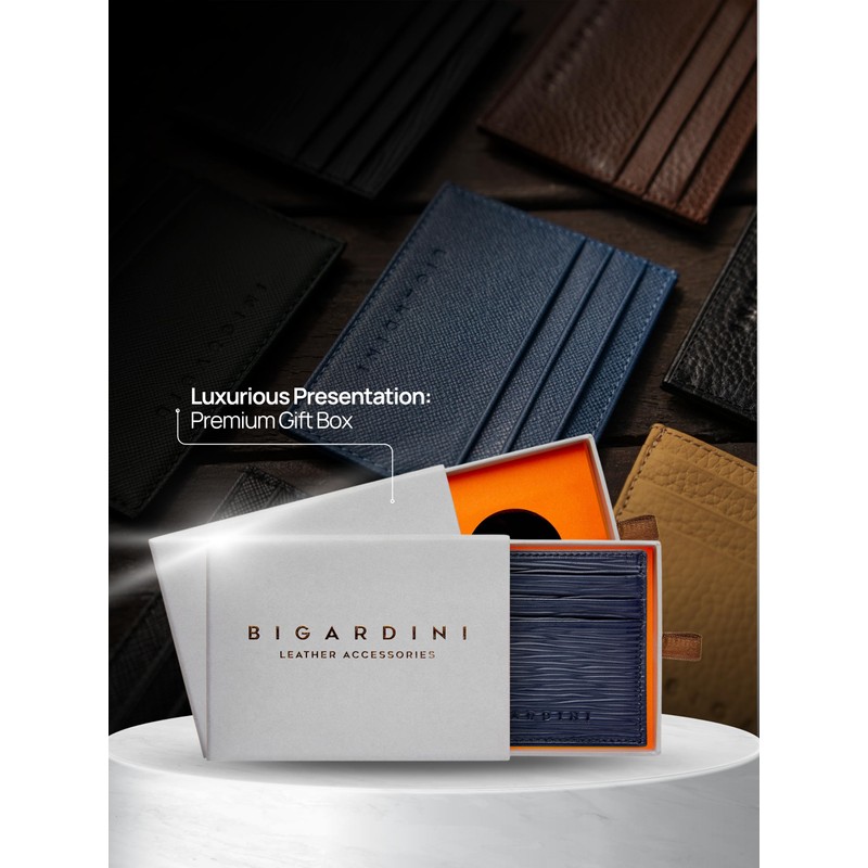 Bigardini Slim Minimalist Leather Card Wallet For Men & Women - RFID Blocking Leather Card Holder Wallets, Epi Navy, Minimalist