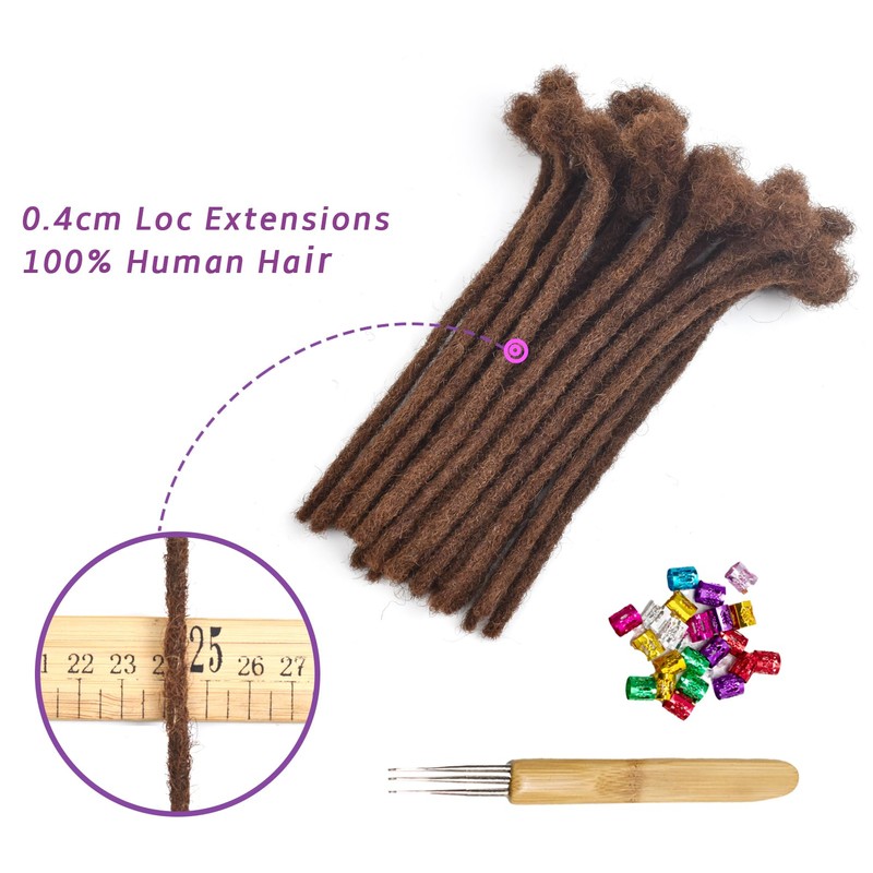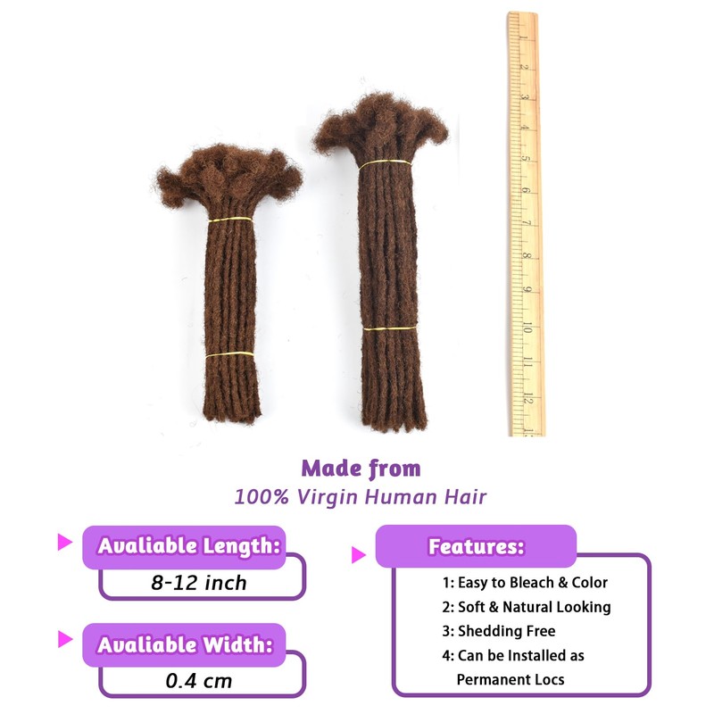BigBeauty Loc Extensions Human Hair 12inch 0.4cm Width 100% Full Head Handmade Permanent Human Hair Loc Extensions Can Be Dyed Bleached Curled Dreadlock Extensions for Men Women (12 inch, Color 4)