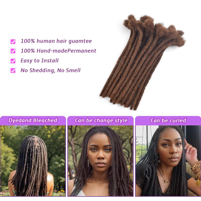 • đŸ„°Loc Extension Human Hair Material: Human Hair Dreadlock Extensions Is Made of 100% Afro Curly Bulk Human Hair,You Can Test By Burning. 0.4cm or 0.6cm Thick/Strand, Soft, Light Weight, Dyeable Bleached Curls.Occasionally There Maybe a Difference Because of Full Handmade.