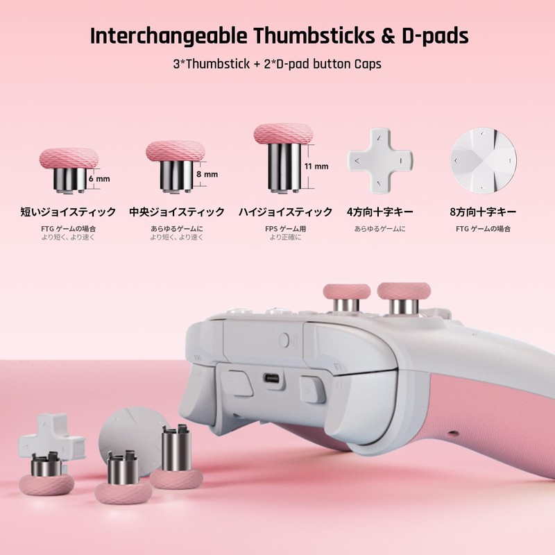 BIGBIG WON Rainbow 2 SE ワイヤレス コントローラー モーション コントロール、ホール効果トリガー、12 ビット ADC、ジョイスティック 3 セット、4方向十字キー、8方向十字キ PC APP、コントローラー Switch/PC/Android/iOS 用 (Pink)