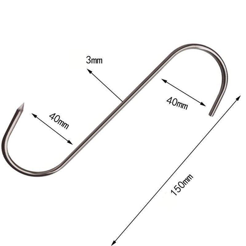 - Stainless steel butcher hooks: The S hooks are made of rust-proof stainless steel and also salt and acid resistant. Rust-proof.