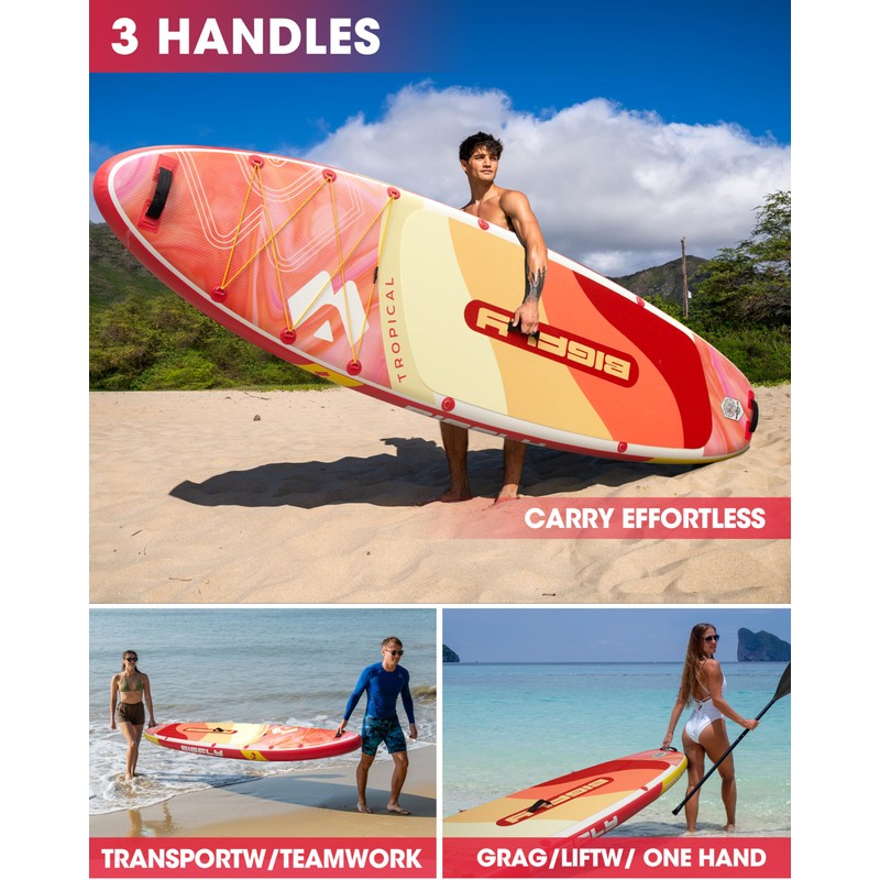 - 【Design and Use】Unique ergonomic handle design allows you to inflate your paddle more easily in a shorter time. The sensitive barometer ensures that you can read the sup inflation pressure value (12-15psi) at any time.The multipurpose and ultra-large backpack can help you easily carry the board to any of your dream places. such as the ocean, lake, and river, and is versatile enough for yoga, surfing, exploring, traveling, and fishing.