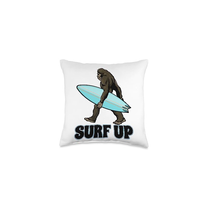 Bigfoot Surfer By VM Bigfoot Surfer Ape Monkey Surfing Board Beach Sea Throw Pillow, 16x16, Multicolor