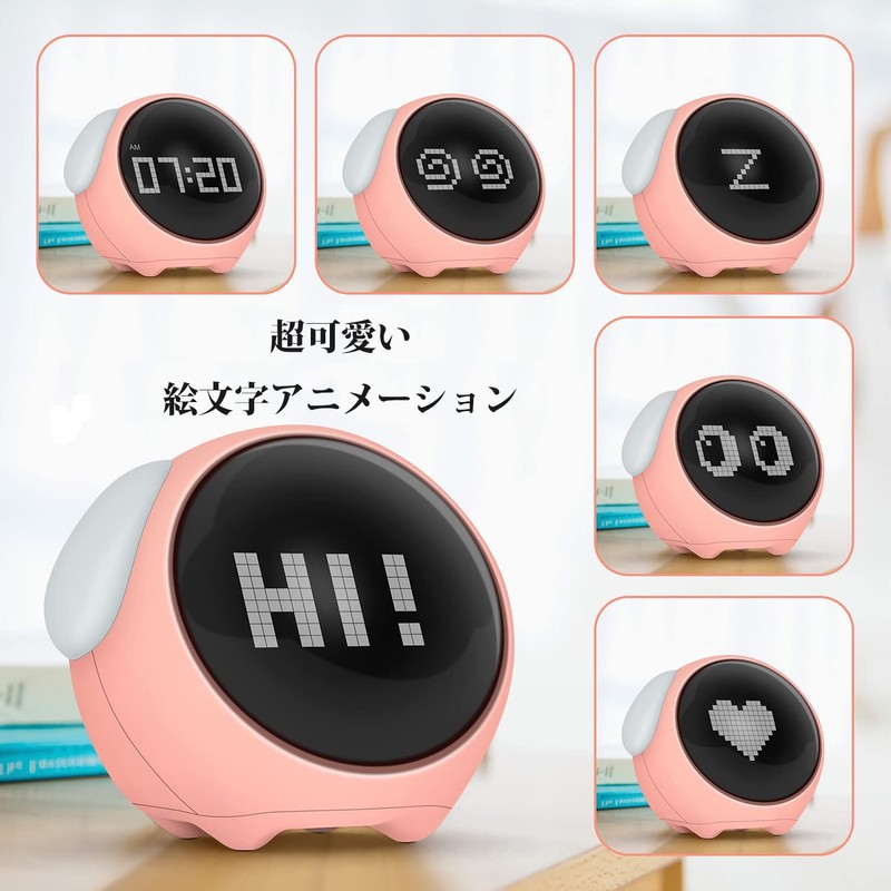 BIGFOX Alarm Clock for Kids Cute Digital Table Clock 2 Pairs Alarm Snooze Thermometer Voice Control Night Light USB Rechargeable for Bedroom Desktop Kids Gift (Pink)