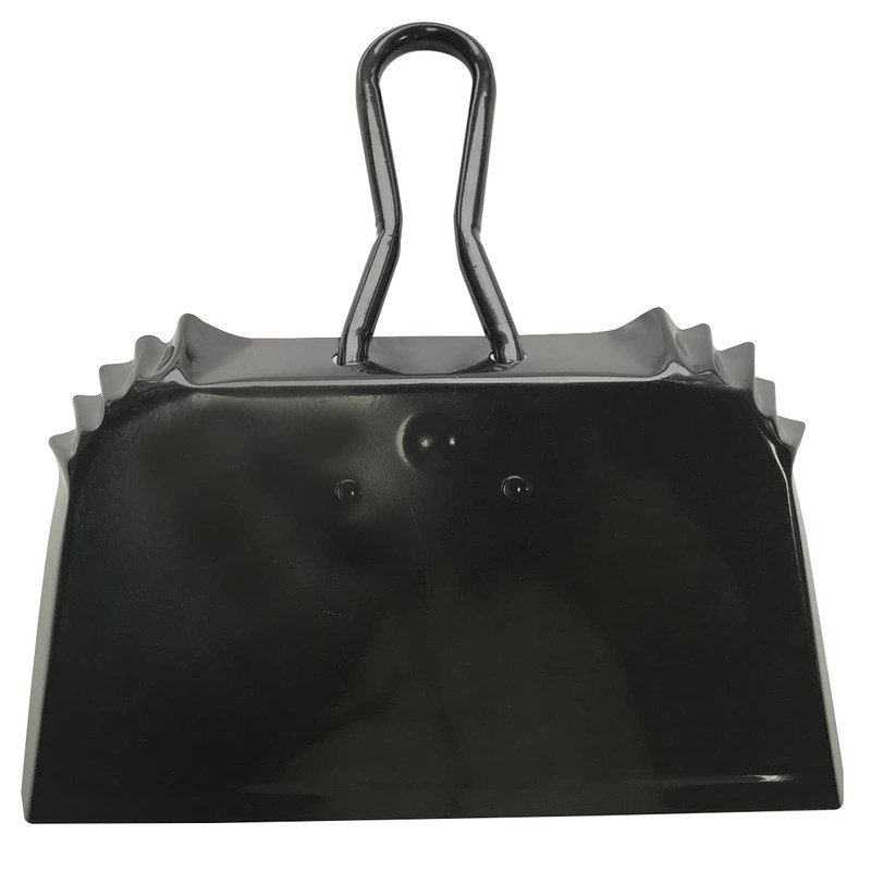 Bigg'un Extra-Wide Metal Dust Pan, 19HS111, Industrial-Strength Handheld Steel Dustpan with Handle, Black