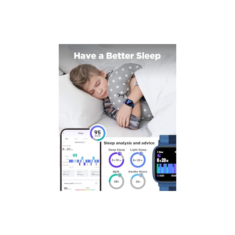 - Comprehensive Health Monitoring: Monitors real-time heart rate and tracks sleep patterns to promote your child's well-being.