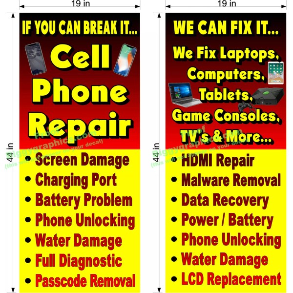 BiggyGraphics NEW! PERFORATED WINDOW VINYL DECALS 19" X 44" PAIR CELL PHONE LAPTOP REPAIRS