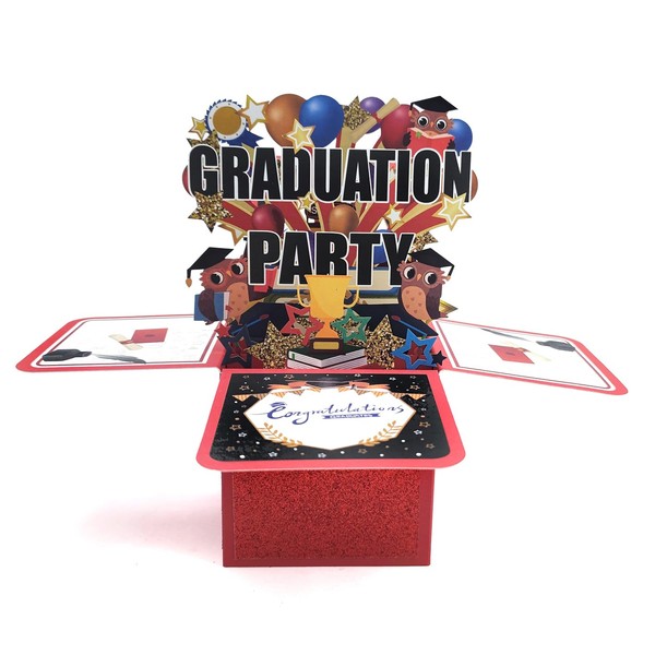 Bighan Pop Up Graduation Card, 3D Graduation Greeting Boxed Cards Graduation Card for High School College University PHD Graduates, Red