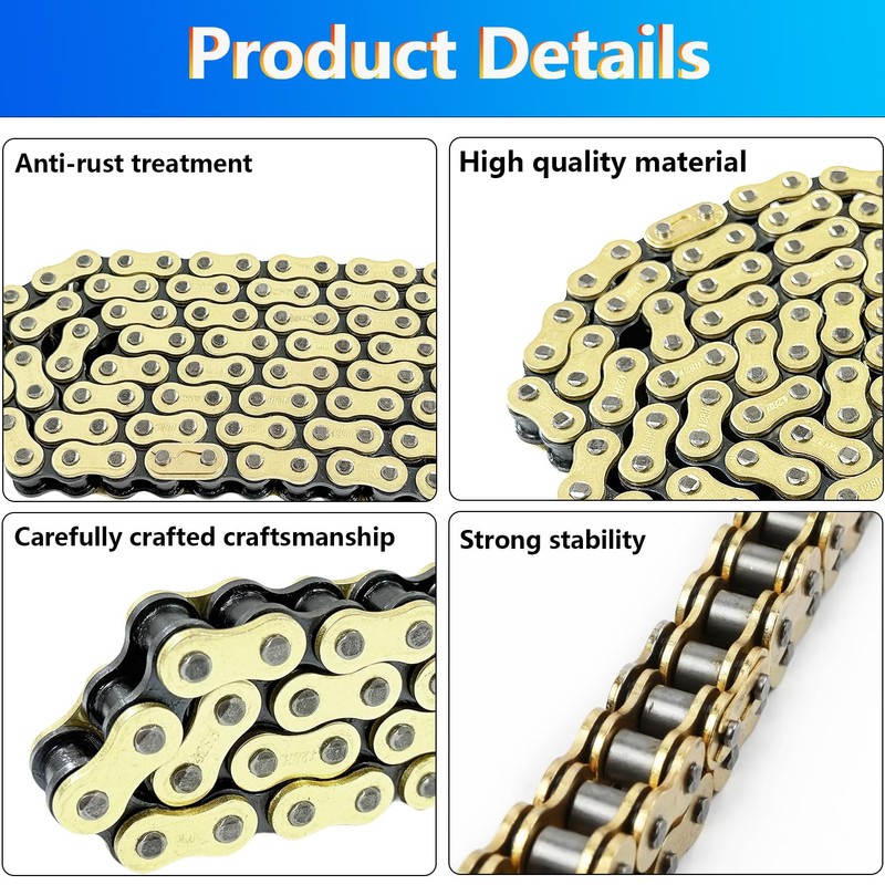 - Seamless Steel Pipe Chain: 428 chain made of highest grade seamless steel, excellent tensile resistance, high strength, not easy to break, wear-resistant, ensure long-lasting lifespan