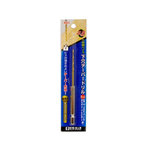 Bigman MSD-8 Hex Shaft, High Speed Lower Hole Tapered Drill, 0.1 inch (2.5 mm)