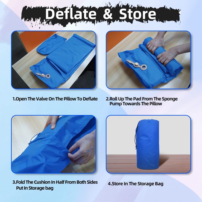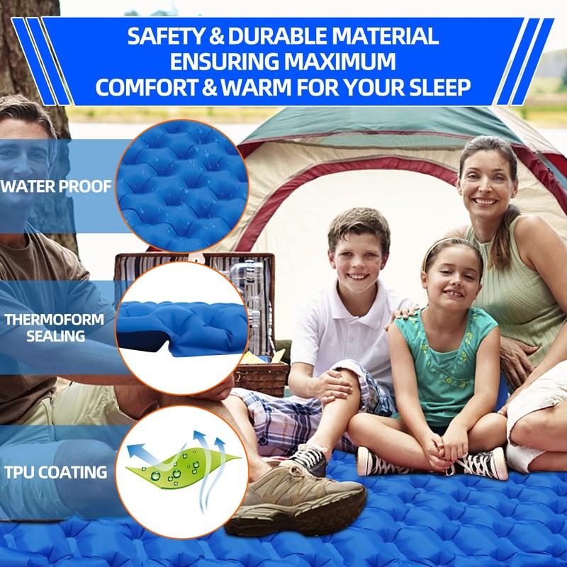 - 🕶️[Moisture and Waterproof] This Sleeping Mat is made of TPU and heavy duty ripstop nylon fabric, the inside of inflatable camping pad contains a thick coating to isolate the ground from the cold, effectively prevent moisture, and create a more secure resting environment for your body.