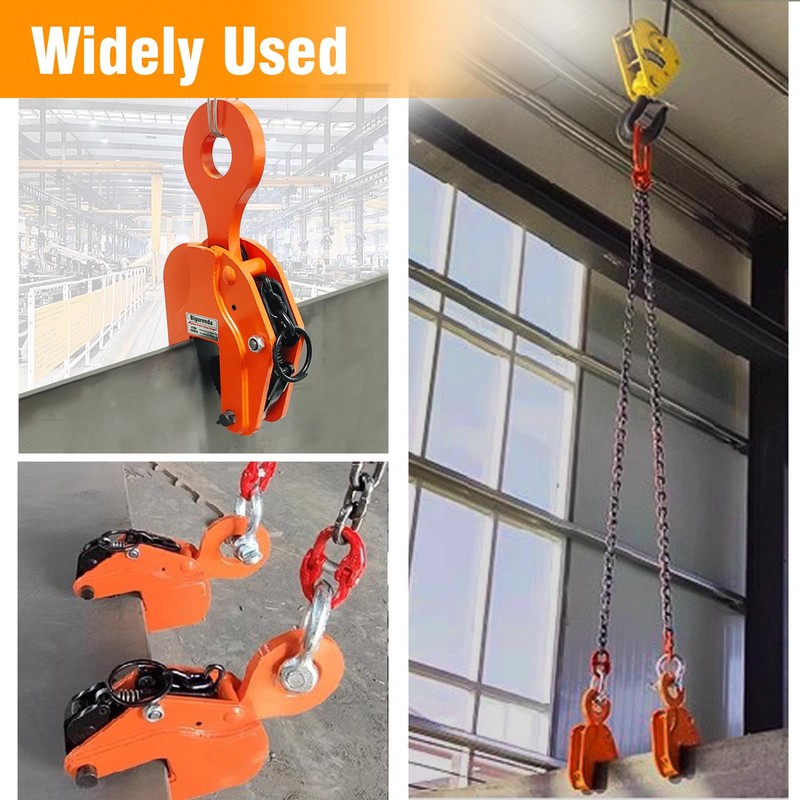 - 【Widely Used】This lifting clamps heavy duty is used to lift and transport steel plates and structures in vertical, horizontal, or transverse positions. Widely used in heavy lifting or transportation of steel plates and metal plates, installation, cutting and handling of steel structures, shipyards, steel markets, mechanical processing, steel plate welding, construction sites, etc.