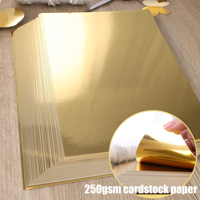 • High Quality - Our gold cardstock, with a weight of 250gsm, is crafted using premium aluminum foil that adheres well when used with machines. The cardstock is thick, durable, and perfect for creating decorations with lasting impact.