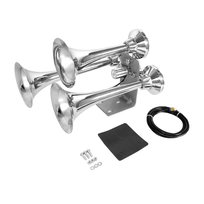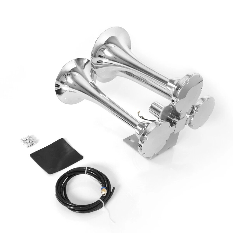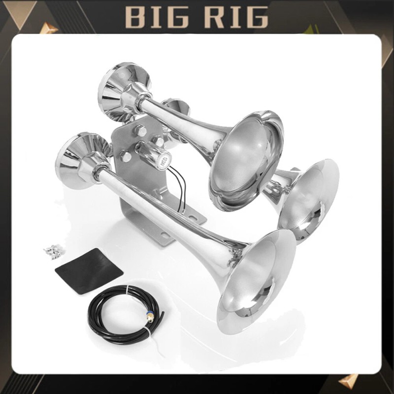BIGRIG 150dB Loud Chrome Truck Air Horn 3 Trumpet Horns Kit For Car Train Boat Pickups