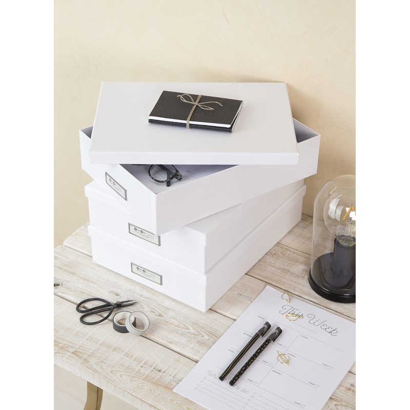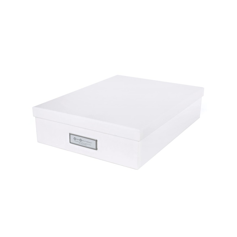 Bigso Box of Sweden OSKAR Dokumentenbox für A4 Papier, Broschüren usw. – Schreibtischablage mit Deckel und Griff – Aufbewahrungsbox aus Faserplatte und Papier – weiß