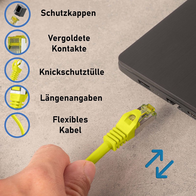 - Ethernet network cable for fast Gigabit data connection data processing, for 10/100/1000 Mbit/s connections, patch cable compatible up/down with CAT5 CAT6 CAT6a devices networks
