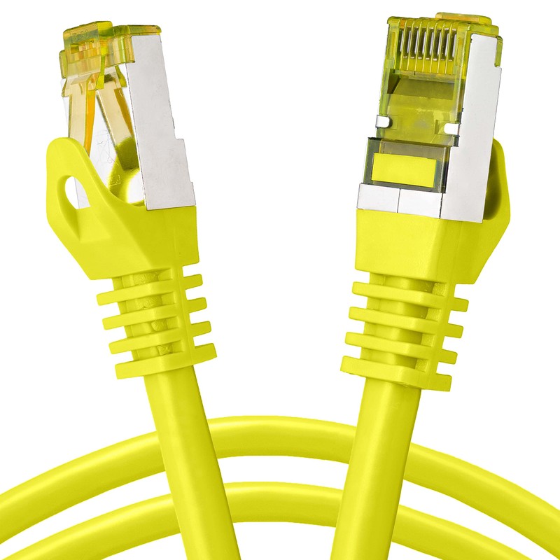 - LAN cable CAT7 S/FTP, double shielded network cable, shielded RJ45 plug, gold-plated pins, latch protection, fully assigned 8-core RJ45 cable