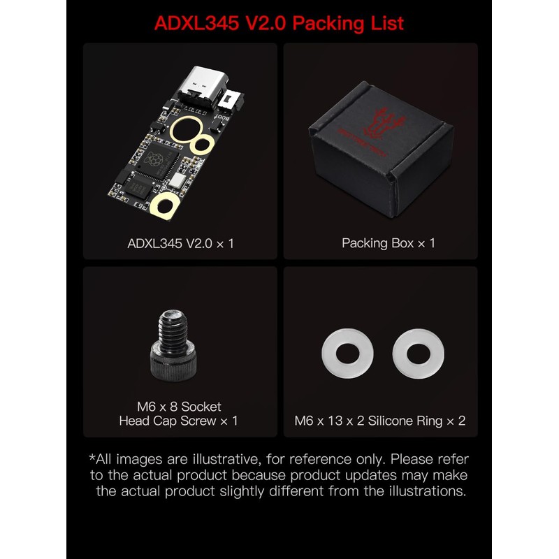 - ★What's in the Box?ADXL345 V2.0 × 1, M6 x 13 x 2 Silicone Ring × 2, M6 x 8 Socket Head Cap Screw × 1. All parts are rigorously tested before leaving the factory. If there is any problem with the product, can you contact us to solve the problem for you first? Our technicians are always at your disposal.