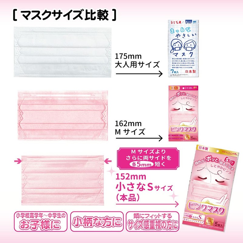 [Biho Mask, Safe Made in Japan, Disposable Non-woven Mask, Flat Rubber/Soft Fabric Specifications, Suitable for Elementary School and High School Children and Petite Women, Light and Comfortable to Wear; Gentle Pink; Prevents Pollen, Viruses, and Splashe