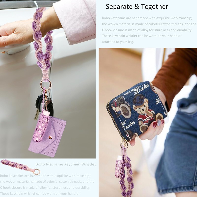 - Comfortable to wear together or separately:can be wear only wrist lanyard key chain with keys,small bag and wallet, or use them together, wristlet wallet lipstick for purse, car keys holder, wallet, purse, backpack, or travel bag, widely applied in home, office, workshop, shopping and fitness and so on, easy to pair with different outfit or styling.