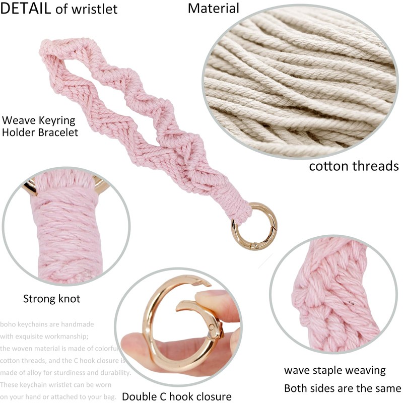 - Bobo macrame keychain: Wristlet bracelet keychain is made in bohemian weave style with beautiful wave patterns woven with cotton thread to add exotic style,these boho keychain is handmade with exquisite workmanship.Lightweight and soft, easy to carry.
