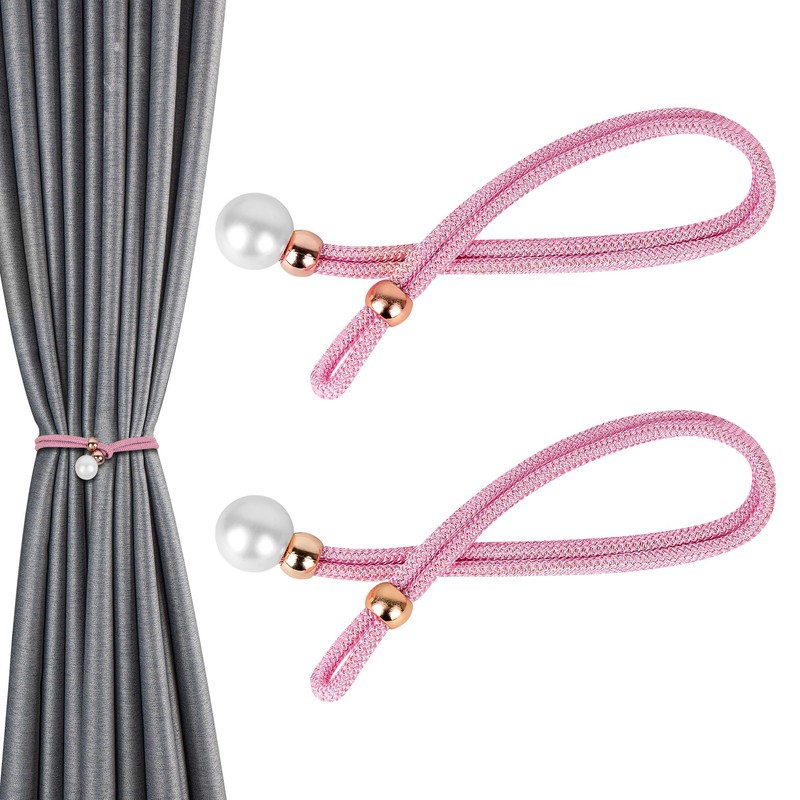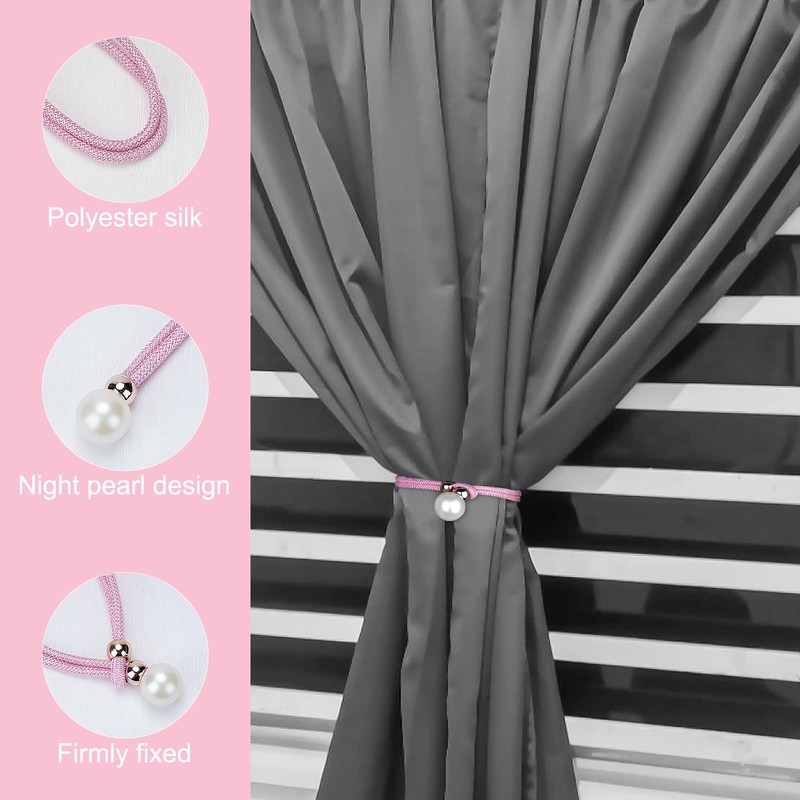 Biiange 2 Pack Adjustable Curtain Tiebacks with Large Imitation Pearls, Decorative Rope Holdbacks for Sheer and Blackout Curtains (Pink)