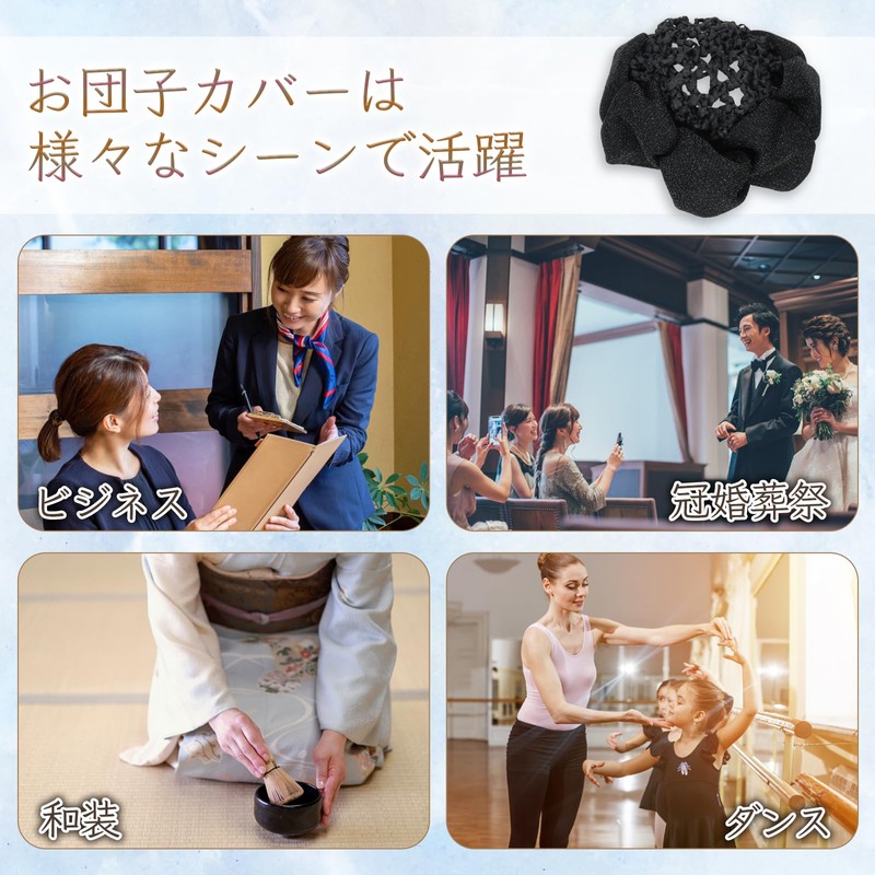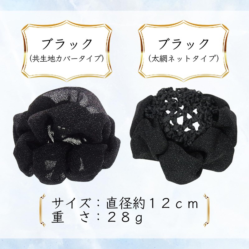 [Bijin Hair KOEIDO] Glitter Bun Cover Chignon Scrunchie Easy Soft Type Clip [Black (Thick Net Type)]